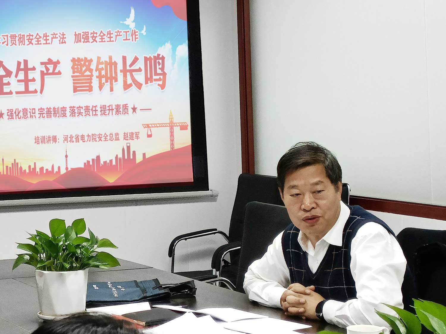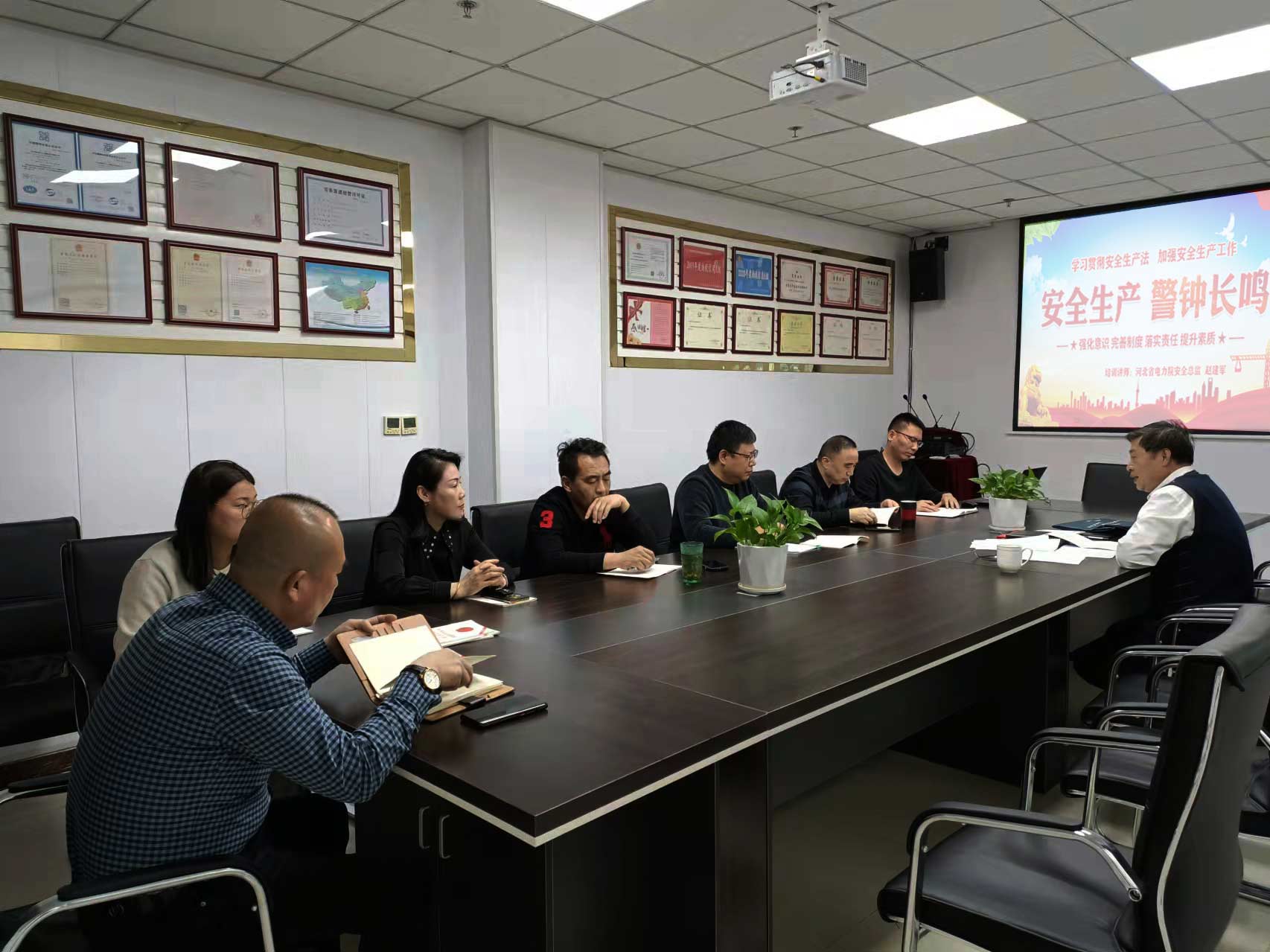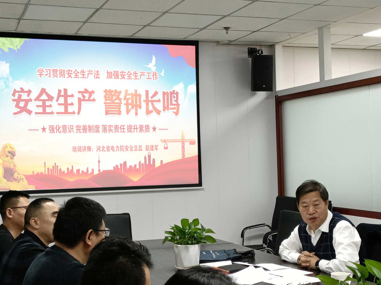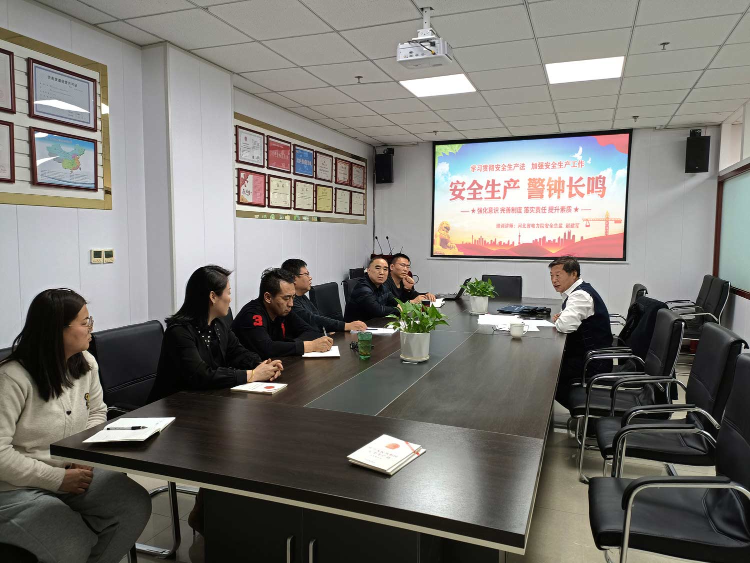 新《安全生产法》已于2021年9月正式实施,为进一步提高安全法治意识,认真落实安全生产主体责任,夯实安全管理基础,2022年3月2日,公司再次组织主要负责人和安全管理人员进行《安全生产法》教育培训,特邀河北省电力院安全总监赵建军作为讲师,由公司总经理朱明温主持。