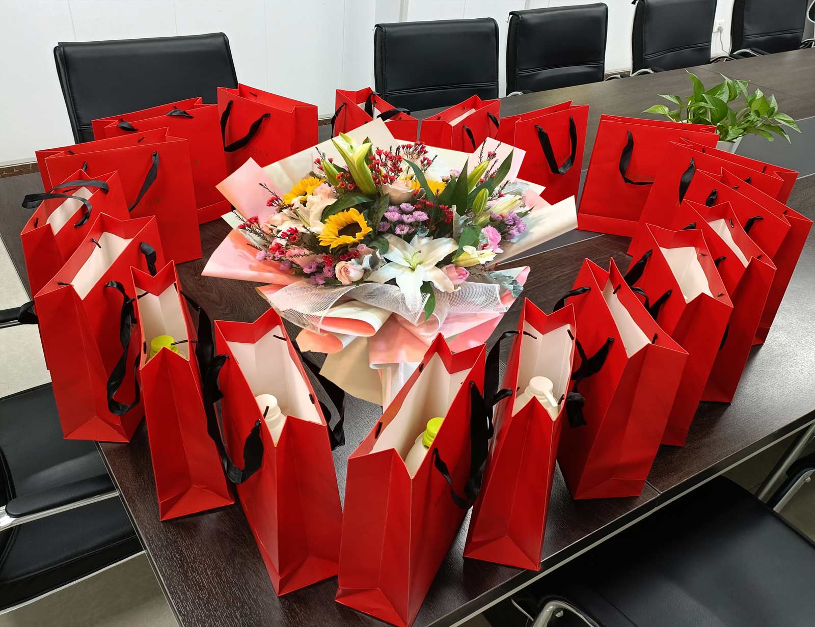 在“三八”妇女节当天,公司为全体女员工送上了礼品及真挚的节日祝福。她们立足岗位,兢兢业业,本职工作,干得有声有色;她们拥抱新时代,践行新思想,焕发新风采,为企业发展献智献策。愿公司每一位女职工在新的奋斗历程中,提技能、展作为、立标杆、亮业绩,成为绽放在岗位上的花朵,发挥“半边天”的靓丽风采!