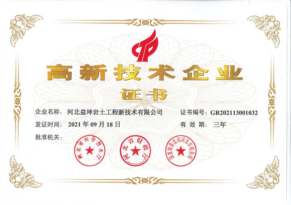 河北益坤公司顺利通过河北省高新技术企业认定评审工作,荣获了由河北省科学技术厅、河北省财政厅、国家税务总局河北省税务局联合颁发的《高新技术企业证书》,正式迈入高新技术企业的行列。