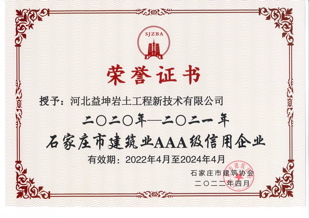 石家庄市建筑业AAA级信用企业证书