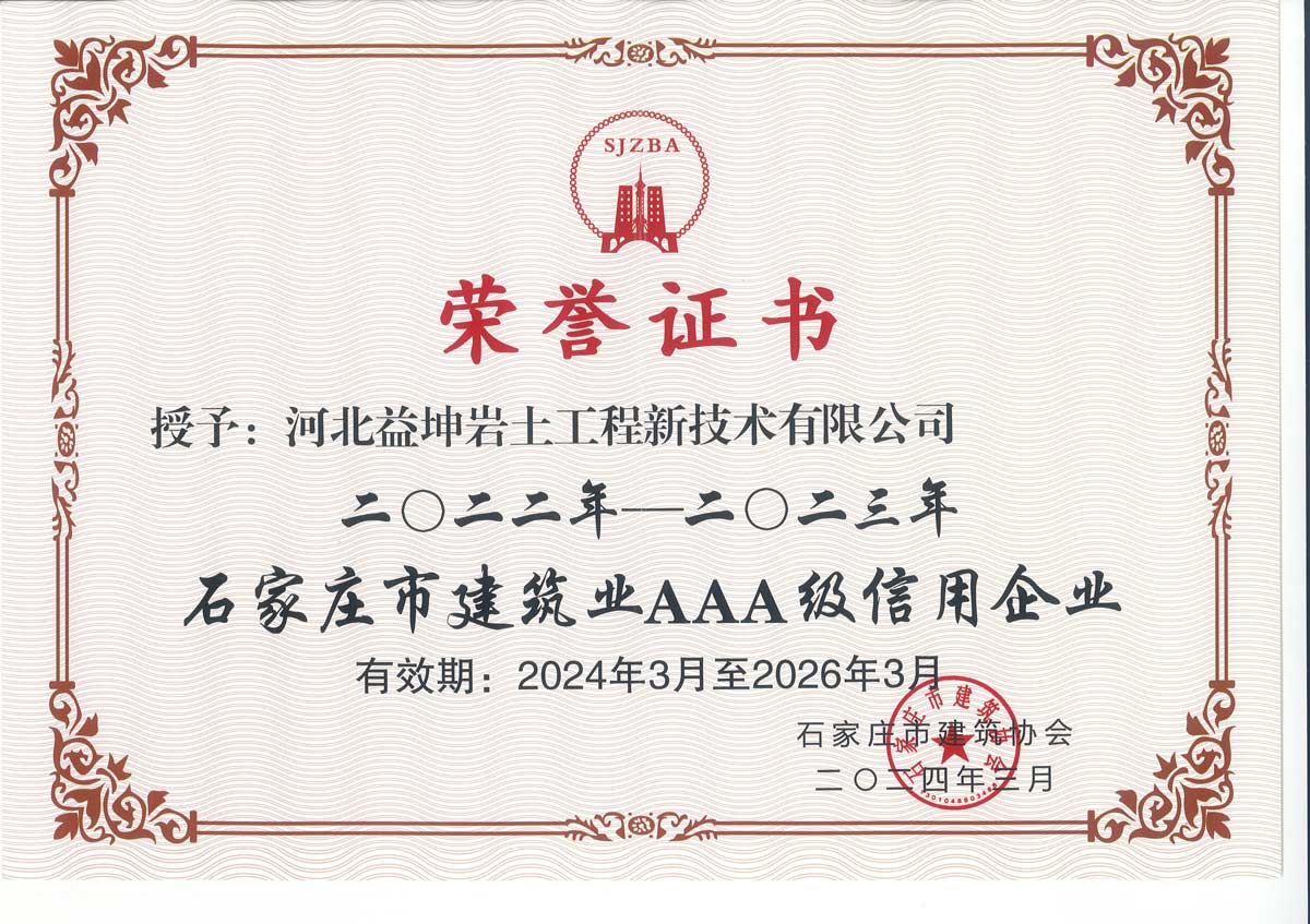 石家庄市建筑业AAA级信用企业证书(2024年3月)