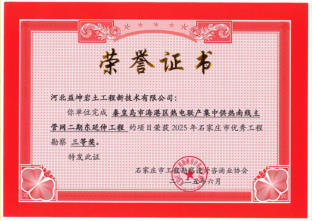 2025年度石家庄市优秀工程勘察三等奖—海港区热电联产集中供热南线主管网二期东延伸工程